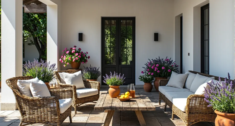 • Tekstyliach: Podkładki, bieżniki i poduszki na krzesła dodają przytulności i pozwalają na szybką zmianę stylizacji tarasu niskim kosztem.