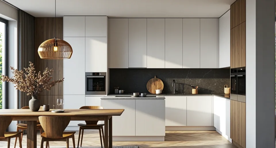 - Dodatki: Żywe rośliny, proste grafiki w drewnianych ramkach, ceramiczne naczynia i świece to nieodłączne elementy tego stylu.